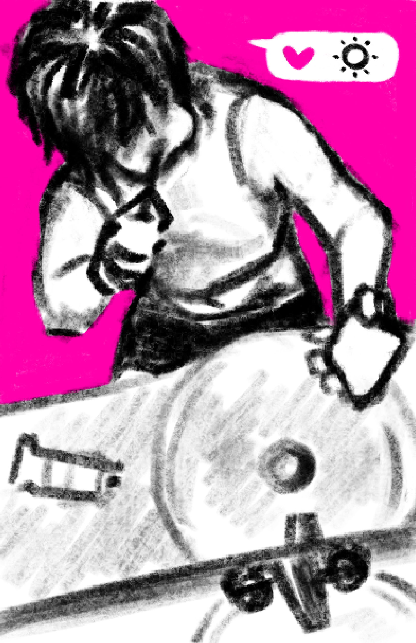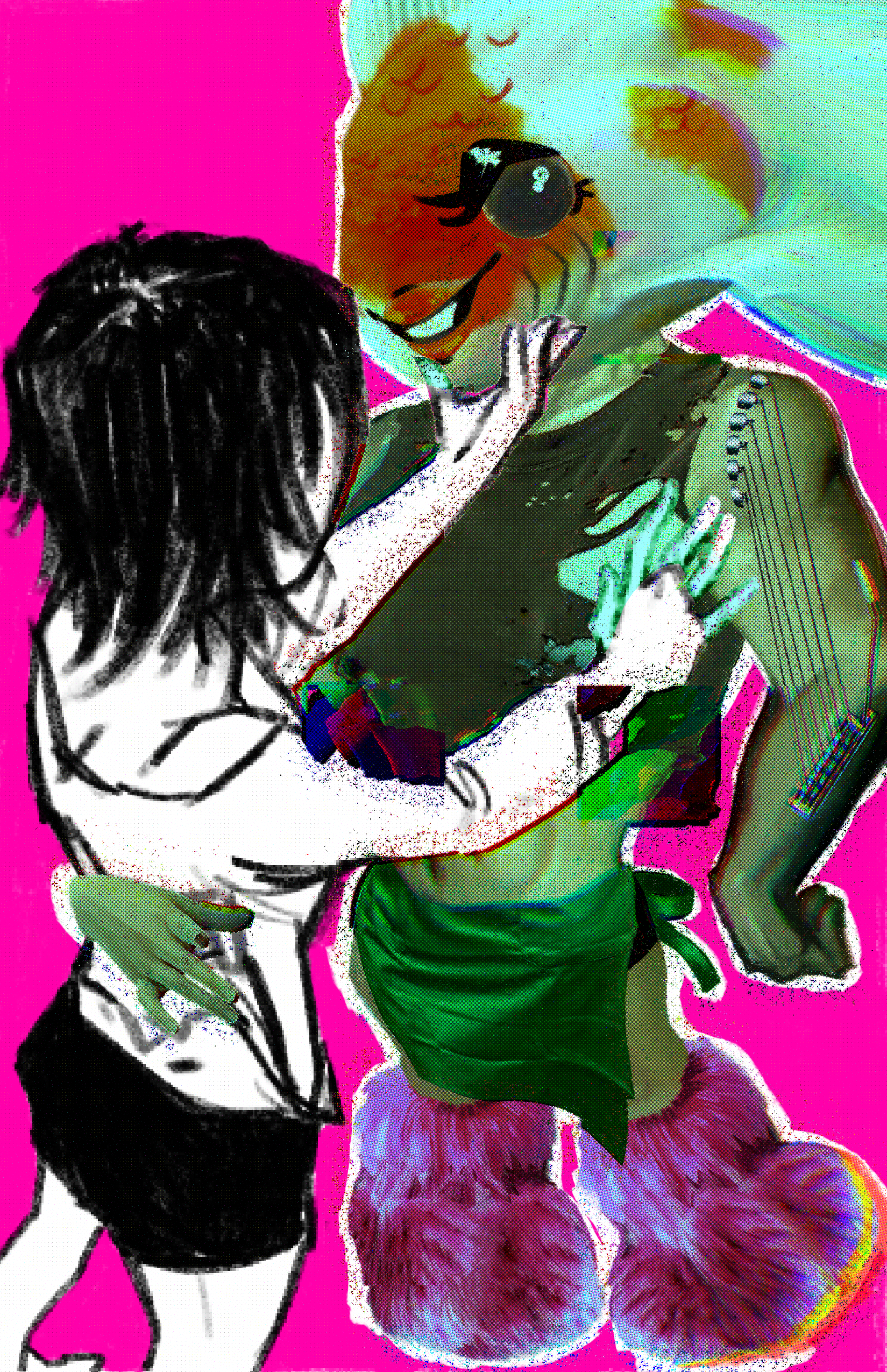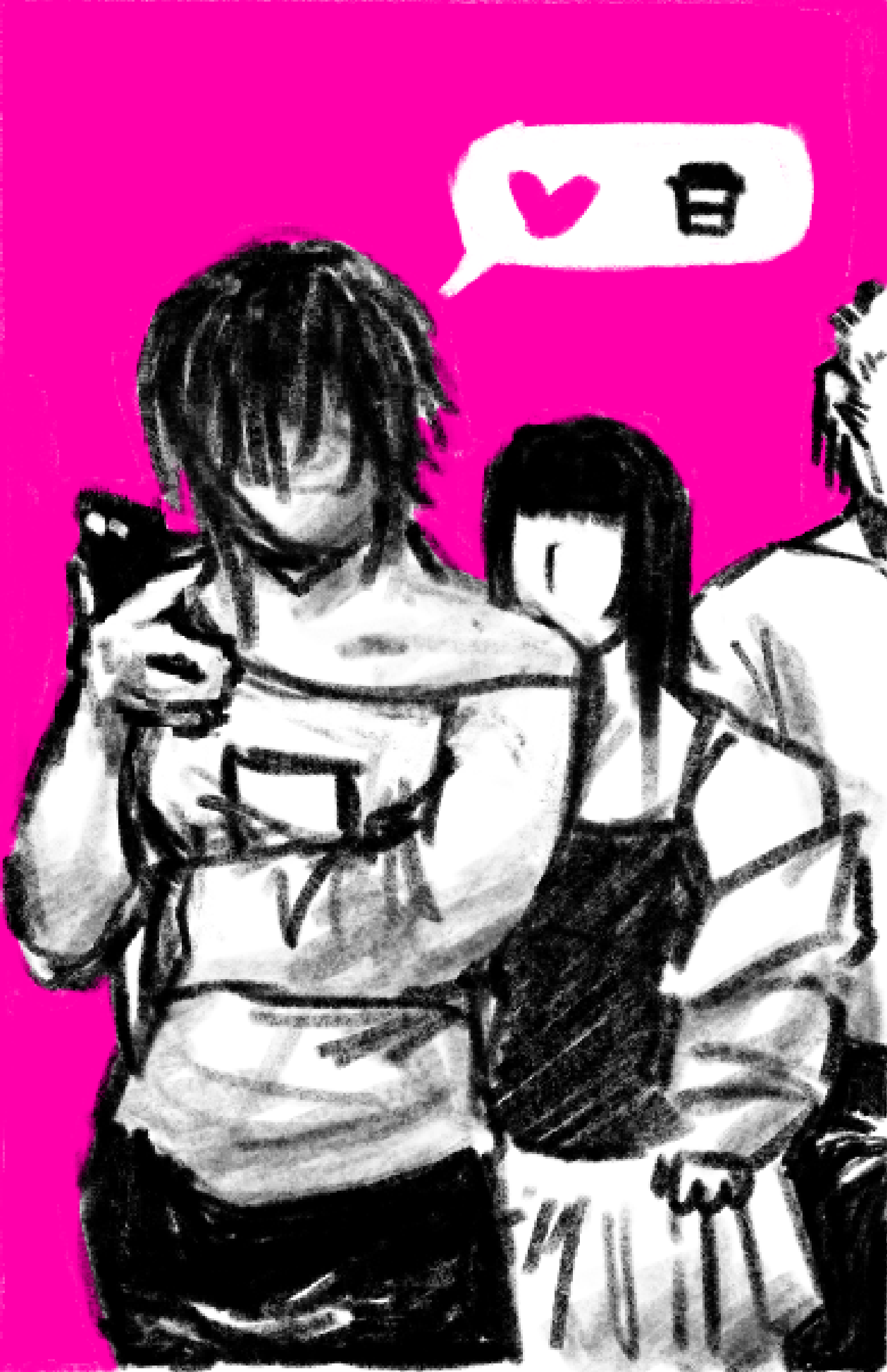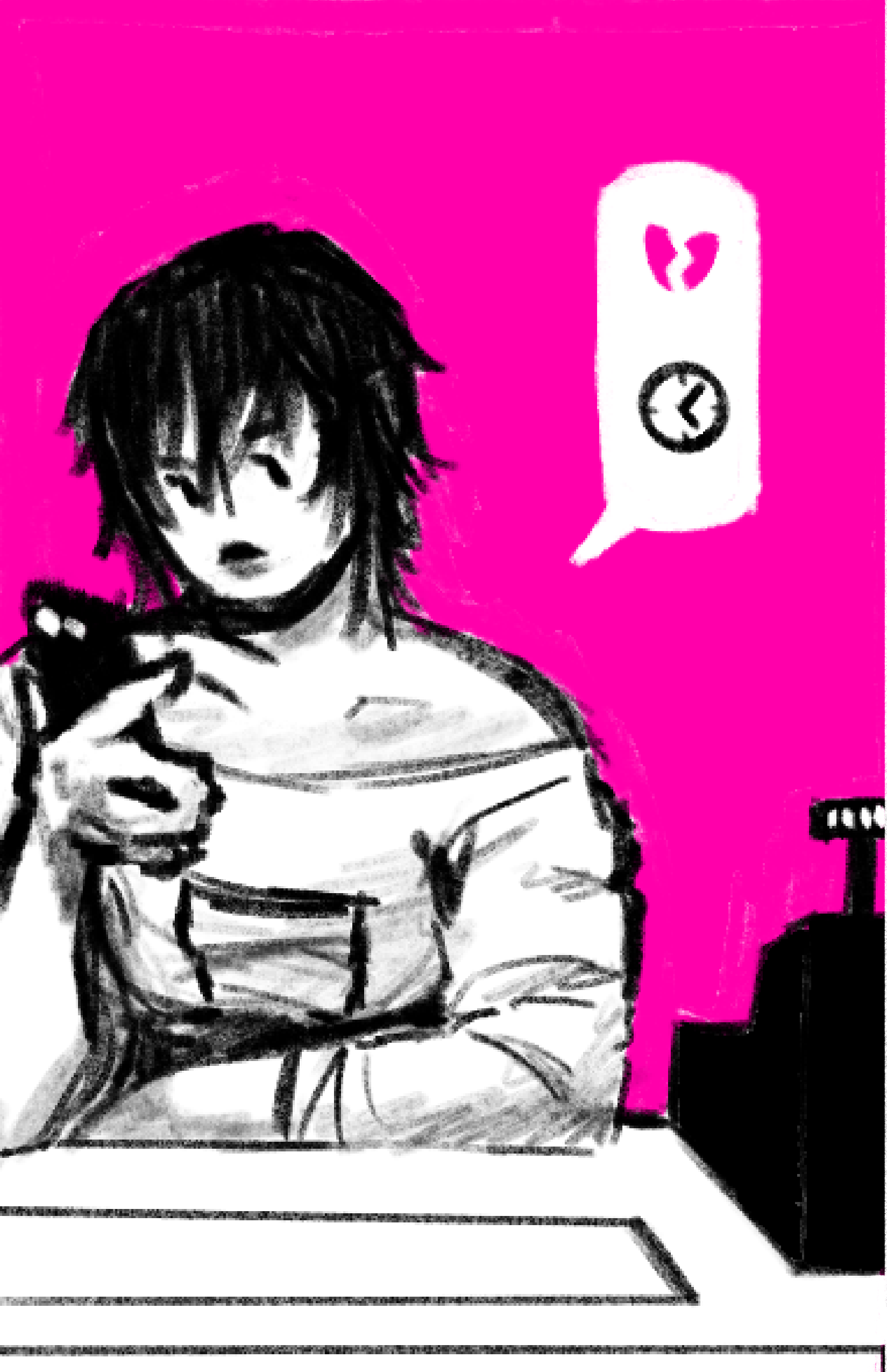 "Digital Affliction" examines current social dilemmas about generative AI by representing hyperbole through futuristic dystopian worlds to imply that the human obsession with making things easier with GenAI will kill our creative and emotional abilities.